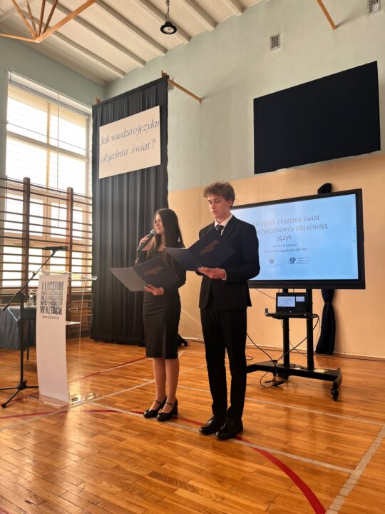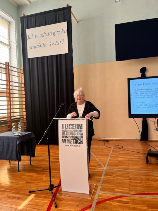 Choć kalendarzowy Międzynarodowy Dzień Języka Ojczystego przypada 21 lutego, to właśnie 27 lutego w murach naszej szkoły odbyło się wyjątkowe wydarzenie, które pozwoliło nam celebrować polszczyznę w sposób niezwykle głęboki i naukowy. W ramach współpracy naszego liceum z Uniwersytetem Jagiellońskim mieliśmy zaszczyt wysłuchać wykładu prof. dr hab. Renaty Przybylskiej – wybitnej językoznawczyni i członkini Rady Języka Polskiego. Pani profesor to uznany w świecie nauki autorytet w dziedzinie semantyki i leksykologii, a także wieloletnia dziekan Wydziału Polonistyki UJ, która w swojej pracy badawczej od lat zgłębia tajemnice tego, jak słowa odzwierciedlają naszą mentalność i kulturę. Pani profesor postawiła przed nami fundamentalne pytania: „Jak język objaśnia świat? Jak językoznawcy objaśniają język?” Odpowiedź, którą rozwinęła w toku swojego wykładu, udowodniła, że język nie jest jedynie narzędziem do komunikacji, lecz potężnym filtrem, przez który interpretujemy rzeczywistość.