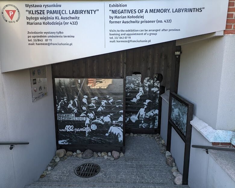 O. Roman Janusz OFM Conv. – kustosz ekspozycji “Klisze Pamięci. Labirynty” w Harmężach oprowadził nas po labiryntach wystawy, wyjaśniając historię powstania oraz treści ukryte pod przejmującymi obrazami, które mówią dosadniej niż słowa o tym, czego doświadczyli więźniowie obozu koncentracyjnego.