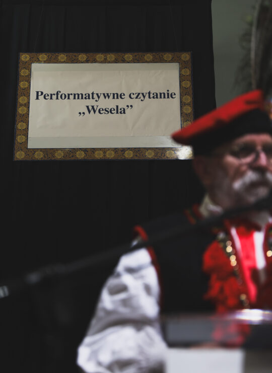 Dokładnie 125 lat temu na krakowskiej scenie Teatru Miejskiego po raz pierwszy wystawiono „Wesele” Stanisława Wyspiańskiego. Z tej okazji w naszej szkole odbyło się performatywne czytanie wspomnianego dramatu. Jego uczestnikami byli zarówno nauczyciele, jak i uczniowie, a także honorowy gość – prof. dr hab. Kazimierz Sikora, kierownik Katedry Lingwistyki Kulturowej i Socjolingwistyki Wydziału Polonistyki UJ. Wydarzenie odbyło się dzięki współpracy szkoły z Wydziałem Polonistyki UJ.