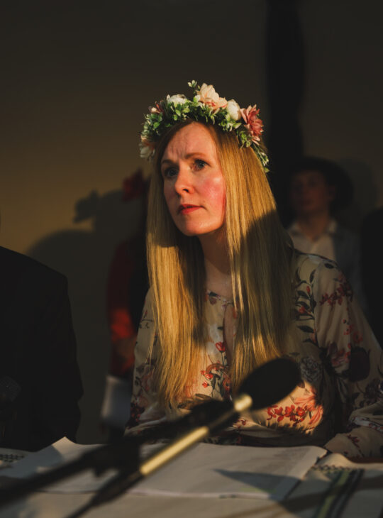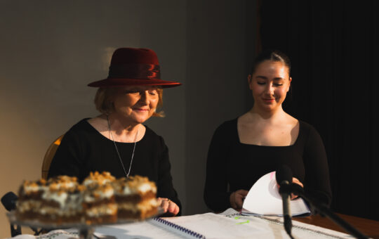 Drugim elementem świętowania było performatywne czytanie „Wesela”. Uczestnicy zasiedli przy stole i wcielając się w swoje role, odczytali przydzielone im kwestie. Każda scena została odegrana w sposób bardzo naturalny, a występujący mogli popisać się swoją wzorową dykcją oraz talentem aktorskim. Jak się okazuje, naszym nauczycielom i uczniom nie potrzeba szytych na miarę kostiumów czy profesjonalnego przygotowania w tej dziedzinie, by zagrać wyśmienicie.