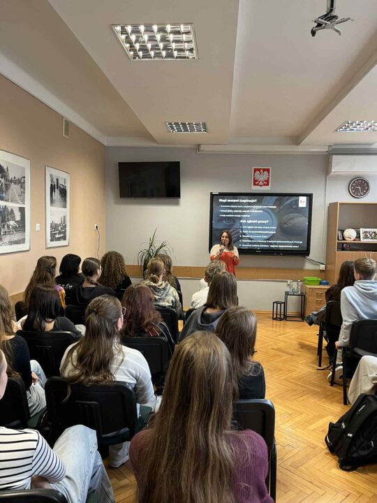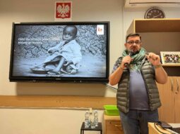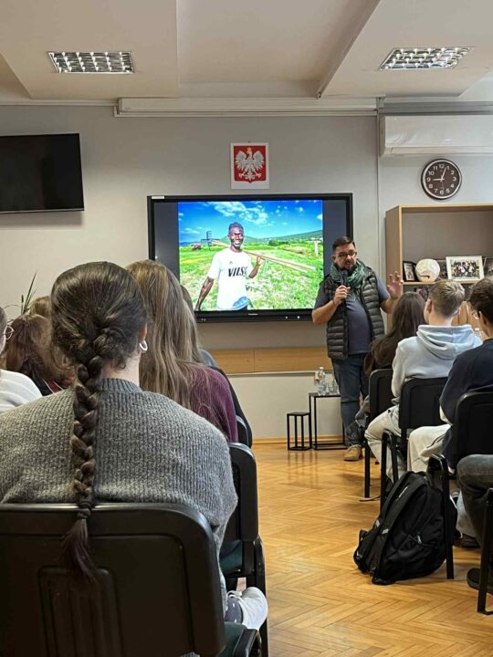 Pan Mateusz opowiedział nam o tym, jak wygląda życie w krajach dotkniętych głodem oraz jak funkcjonują obozy dla uchodźców. Przedstawił nam działalność fundacji – szpitale, programy dożywiania dzieci, edukację i naukę umiejętności potrzebnych do pracy. Zaprezentował zdjęcia z codziennego życia mieszkańców obozów dla uchodźców, które pokazywały, że są ludźmi takimi samymi jak my.