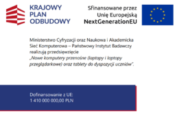 „Wdrażanie inwestycji C2.1.2 Wyrównanie poziomu wyposażenia szkół w przenośne urządzenia multimedialne – inwestycje związane ze spełnieniem minimalnych standardów sprzętowych, wskaźnik C15G Nowe komputery przenośne (laptopy, laptopy przeglądarkowe i tablety) do dyspozycji uczniów”.