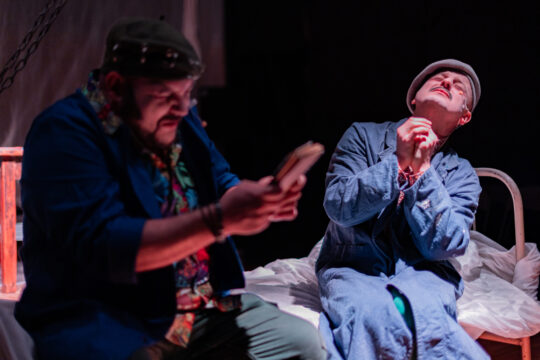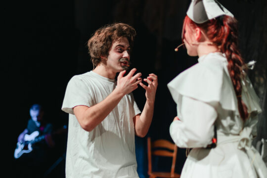 Fenomenalna była również sceniczna (i muzyczna jednocześnie) obecność gości specjalnych – Kornela Płonki, Michała Olearczyka i Wojciecha Fronta, którzy wcielili się w role Alfreda, Pafnucego i Muzyka. Ich pojawienie się na scenie wprowadziło nową energię i, co ważne, dodało do tej mrocznej historii dużo śmiechu. Dzięki nim spektakl zyskał elementy groteski i humoru, co pozwalało widzom na chwilę oddechu od niepokojącego nastroju całej sztuki. W ten sposób niezwykle ważną rolę odgrywała muzyka, częściowo wykonywana i improwizowana na żywo w zależności od sytuacji scenicznej, a wcześniej dopasowana przez reżyserów do sugestii kontrabasisty zespołu OneNess.