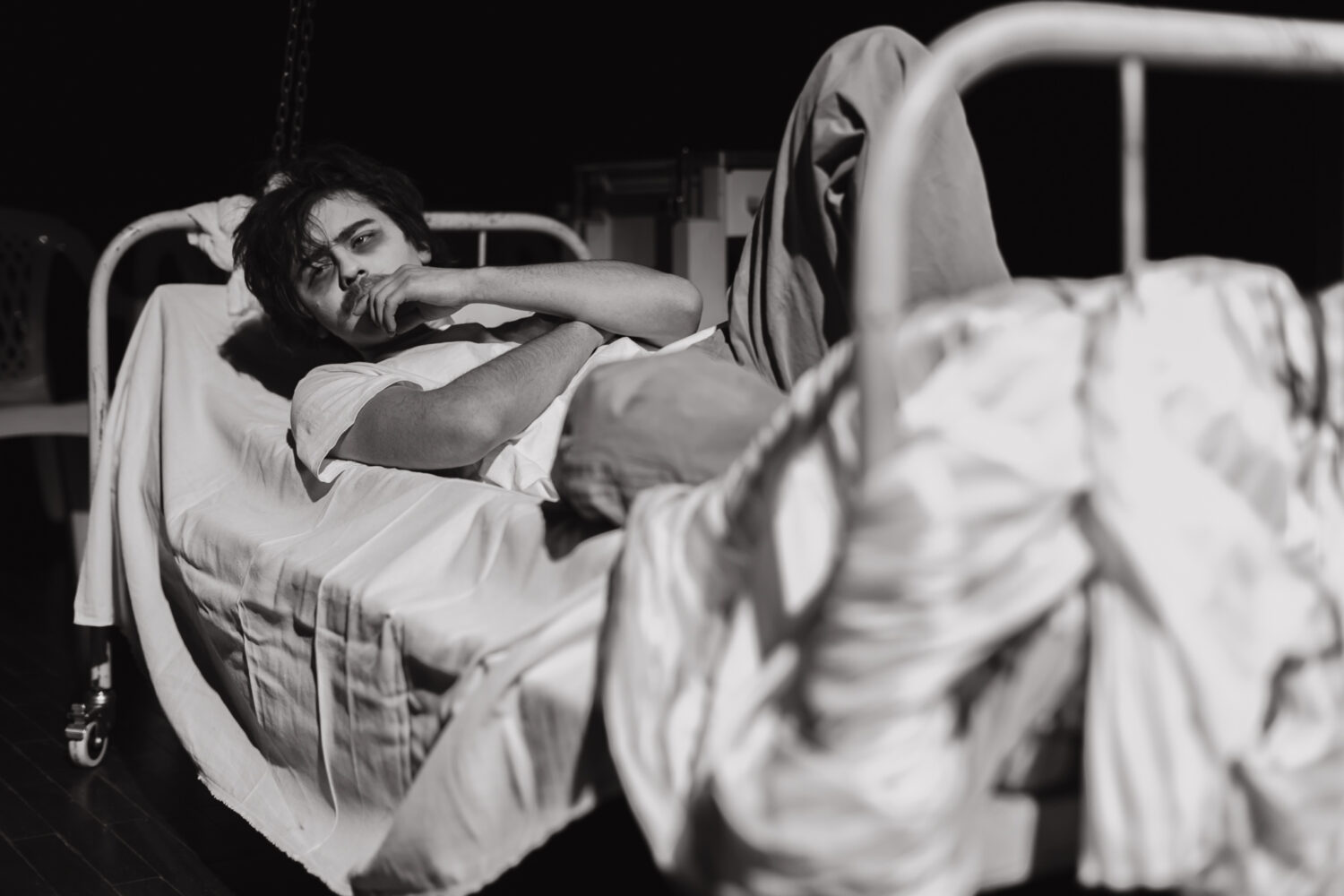 Niezwykłym zabiegiem była interakcja lekarzy z widownią na początku spektaklu. Zanim akcja skoncentrowała się na głównym bohaterze, personel medyczny wkroczył między rzędy, przeprowadzając improwizowane badania na widzach. Zadawanie pytań o stan zdrowia, sprawdzanie odruchów czy uważne notowanie spostrzeżeń na temat publiczności sprawiło, że granica między sceną a widownią uległa całkowitemu zatarciu. Widz przestał być bezpiecznym obserwatorem, a stał się potencjalnym pacjentem, co od razu narzuciło ton całej inscenizacji. W relacji z Walpurgiem lekarze wykazywali się skrajnym chłodem i mechanicznym podejściem. Ich obecność – z notesami i stetoskopami – nie niosła obietnicy powrotu do zdrowia, lecz była formą intelektualnej i fizycznej opresji.